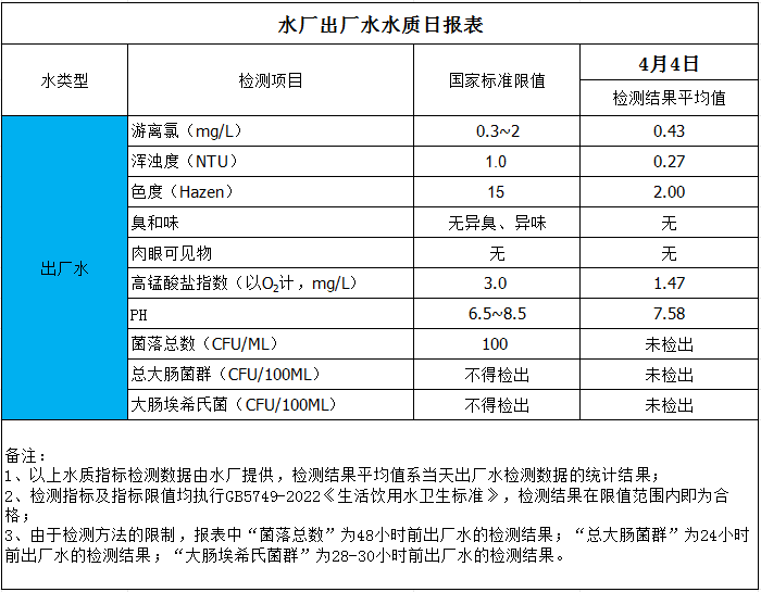 水廠出廠水水質(zhì)日?qǐng)?bào)表(2025-4-4)