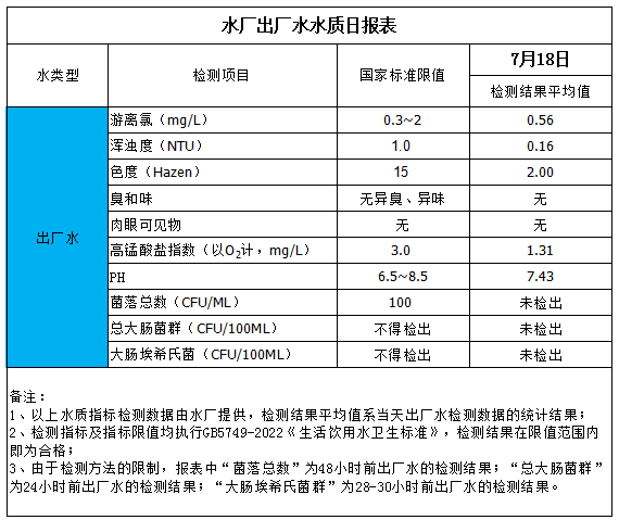 水廠出廠水水質(zhì)日報表(2025-7-18)