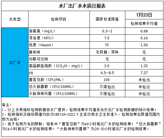 水廠出廠水水質(zhì)日報(bào)表(2025-7-23)