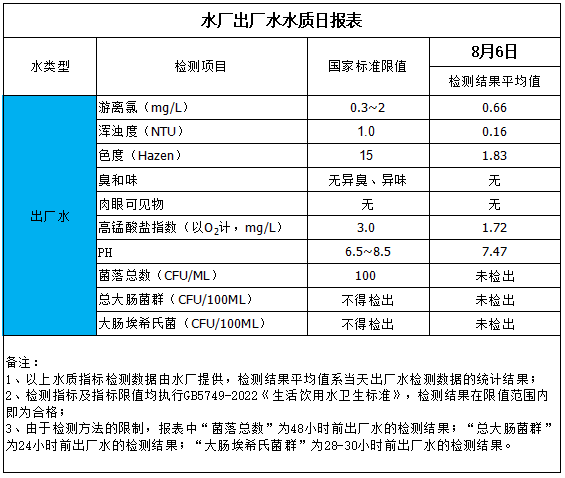 水廠出廠水水質(zhì)日?qǐng)?bào)表(2025-8-6)