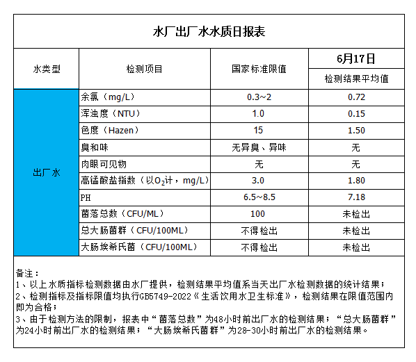 水廠出廠水水質(zhì)日報(bào)表(2023-6-17)