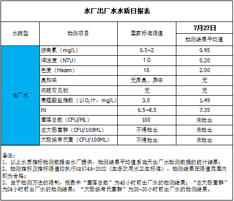 水廠出廠水水質(zhì)日?qǐng)?bào)表(2023-7-27)