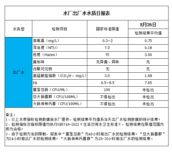 水廠出廠水水質(zhì)日報(bào)表(2023-8-26)