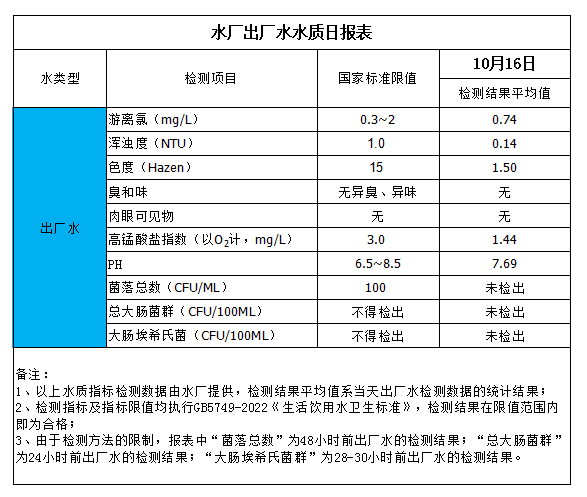 水廠出廠水水質日報表(2023-10-16)